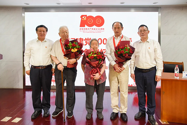 建黨100年,黨齡50年。恒天集團(tuán)黨委書記、董事長劉海濤,黨委副書記、總經(jīng)理顏甫全向離退休老黨員代表曹東升(黨齡68年)、郭春梅(黨齡68年)、李懷嶺(黨齡51年)頒發(fā)了“光榮在黨50年”紀(jì)念章,新黨員代表為老黨員獻(xiàn)上鮮花。這幾位離退休老黨員深情表示,中國共產(chǎn)黨的一百年既是艱苦奮斗的一百年,也是取得輝煌成就的一百年,我們雖然離開了工作崗位,但心與公司是始終相連的,會繼續(xù)大力傳承紅色基因,余生用忠誠繼續(xù)譜寫生命樂章。