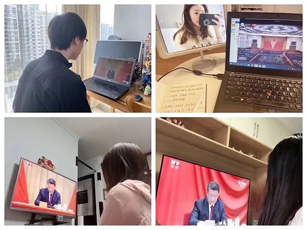 在各級團組織精心組織下,對大會期待已久的團員青年們以會議室或生產一線集中收看、居家獨立收看等方式,全程觀看大會盛況,認真聆聽學習中共中央總書記、國家主席、中央軍委主席習近平重要講話精神。
